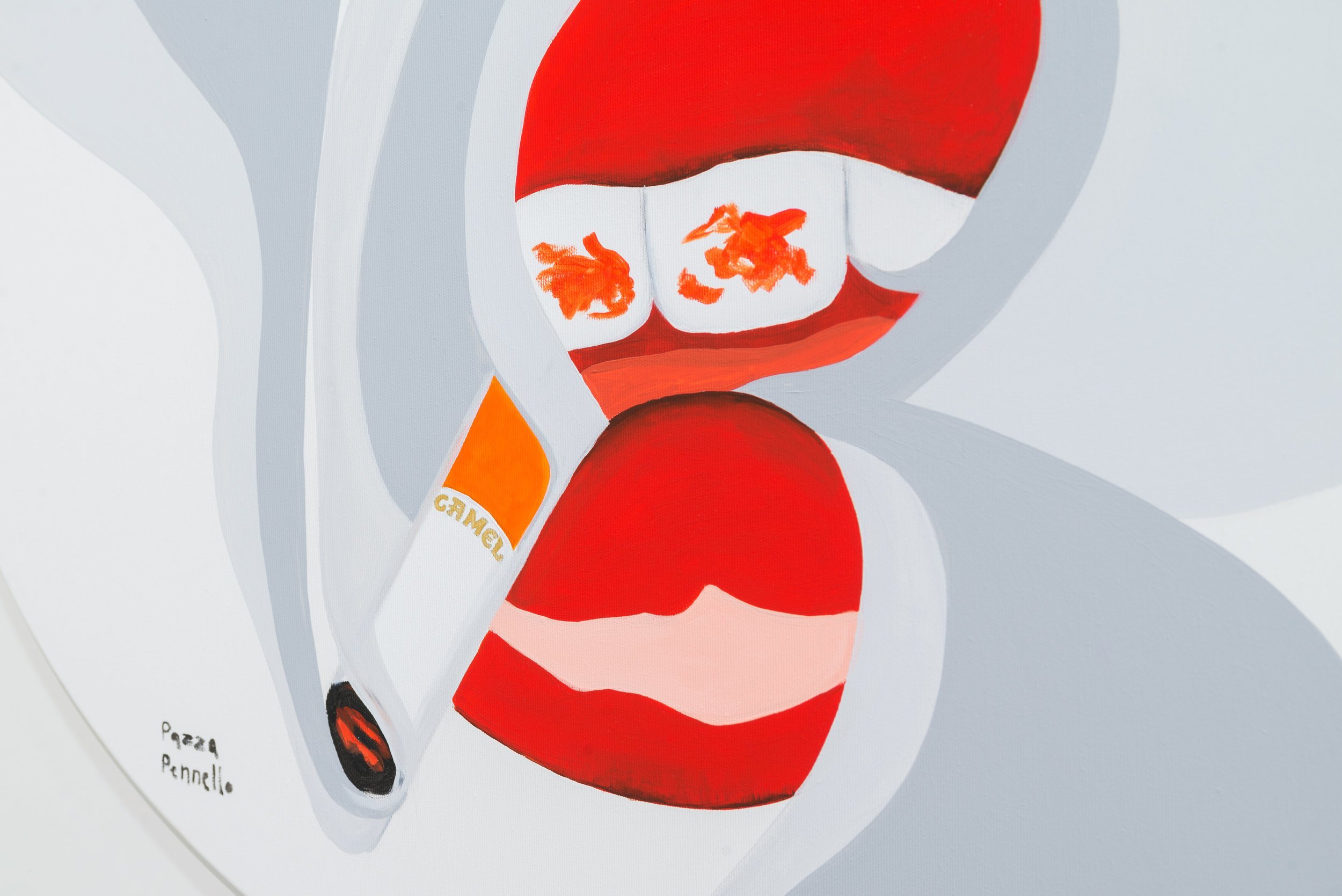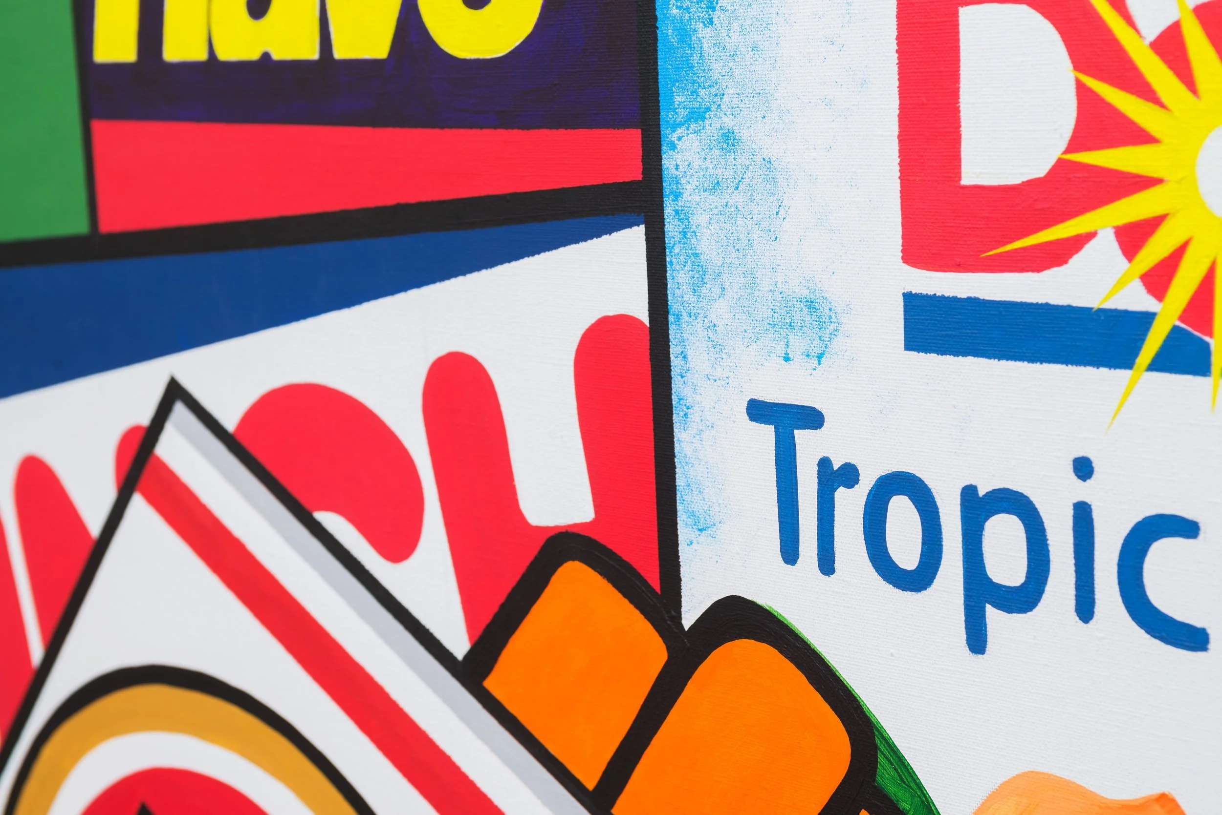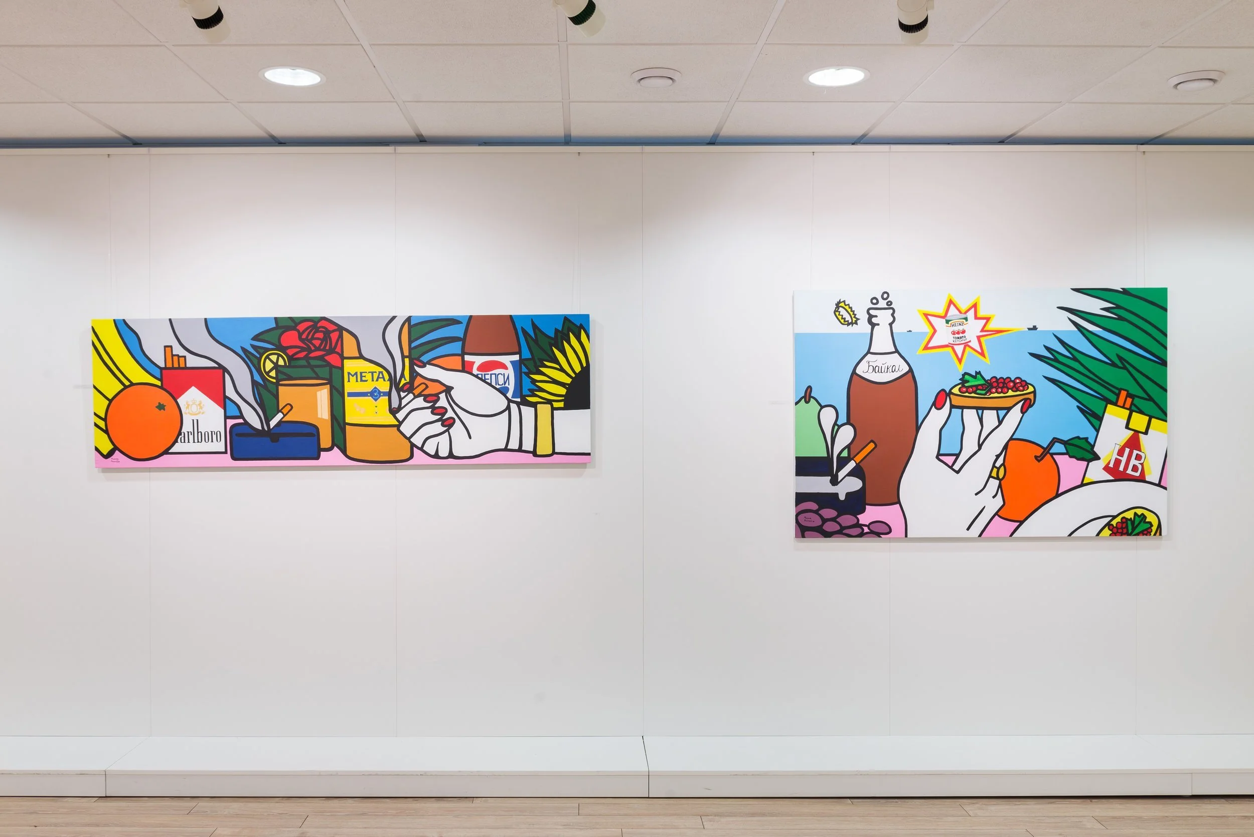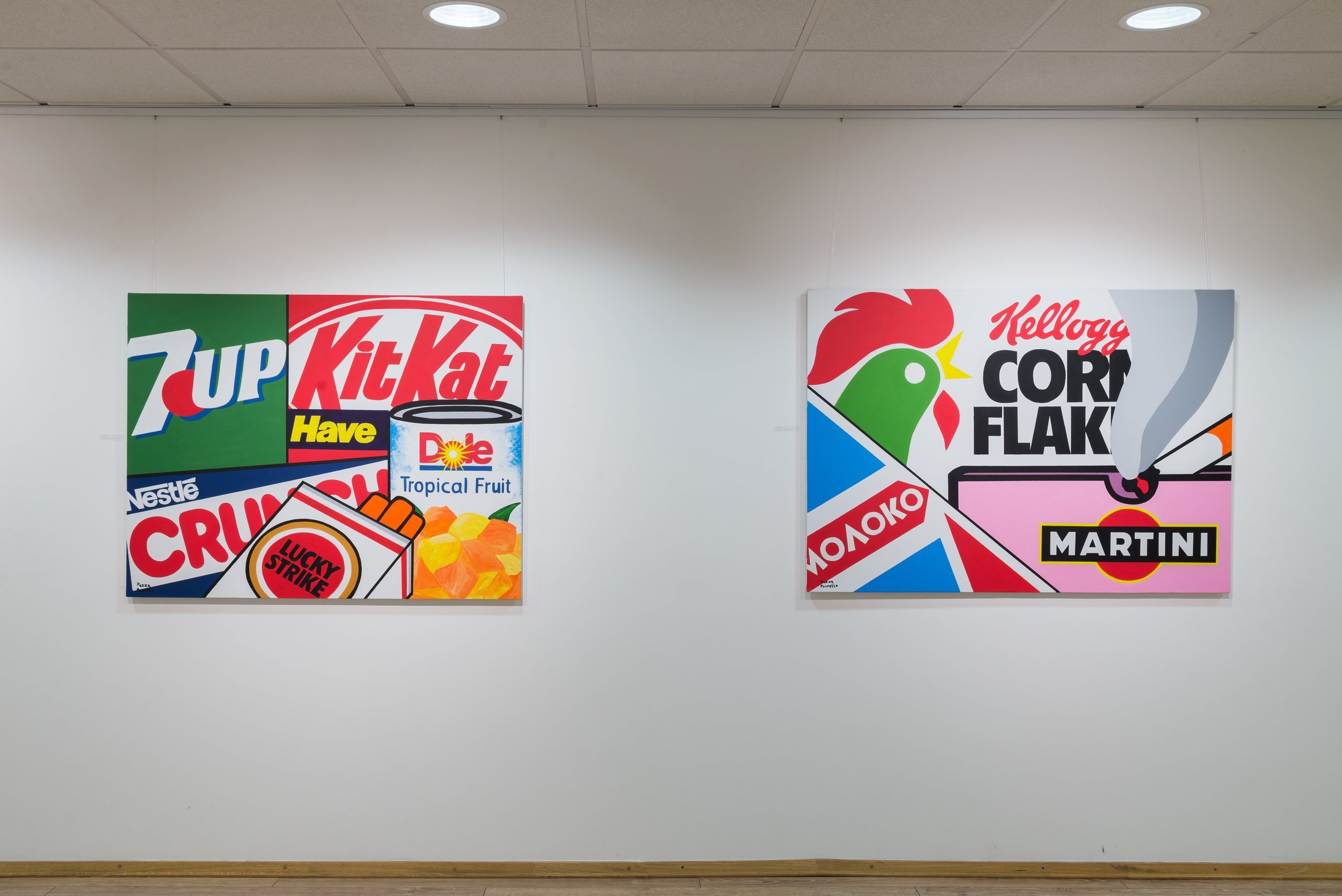 The "Chic-Modern" exhibition of the young Ukrainian artist Pazza Pennello included acrylic paintings on canvas, which depicted the brands and products that appeared in Ukraine after the fall of the Iron Curtain. These American and European goods became valuable and rare things in post-Soviet societies. “Chic-modern” is a collocation which was very popular in the USSR and was used to name luxury, expensive, rare, fancy, and stylish goods. Through the prism of art, we could look at how branding and marketing affect the different cultures and lives of people in the post-industrial economy. The artist showed scarce goods, which revealed the values of consumers, producers and the culture itself in which they live. The series was complemented by a series of portraits of characters from popular American TV series such as Santa Barbara and Dynasty, demonstrating that films and TV series are commercial brands and trendy products that translate cultural values and codes.