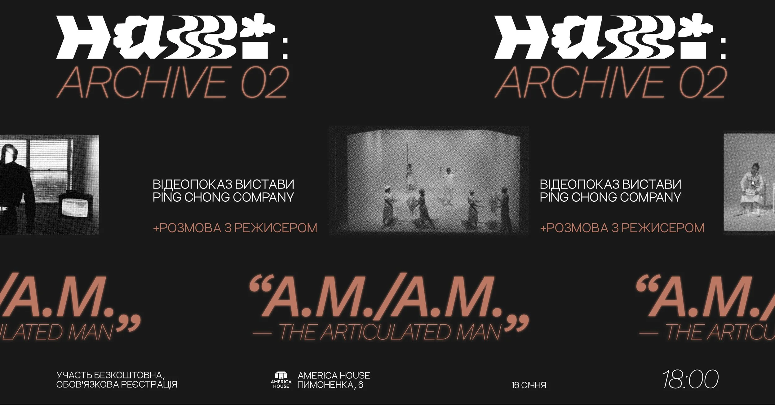 «A.M./A.M. - Артикульована людина» — це новаторська міждисциплінарна вистава, створена Пінгом Чонгом у 1982 році. Свого часу ця вистава дивувала глядачів новою формою і вже тоді виражала фантазії про технологічний прогрес, що почав катапультний зліт. Нелінійний наратив, майже повна відсутність тексту, іронія, поєднана з чуттєвістю, абстрактна сценографія, відеопроєкції та музика легендарної Мередіт Монк зробили «A.M./A.M.» проривом у театральному мистецтві того часу. Сьогодні, через 45 років після прем’єри, ми дивимося на цю виставу як на зразок одного з найцікавіших культурних етапів в історії США — періоду культурного розквіту, перформативного повороту та квір-революції.